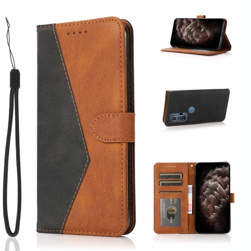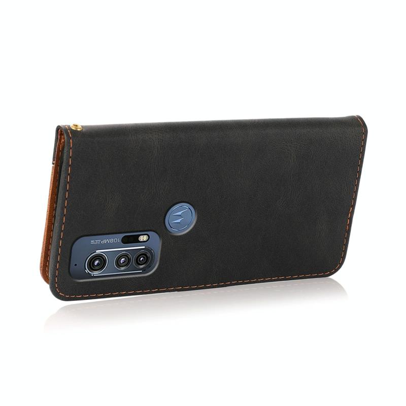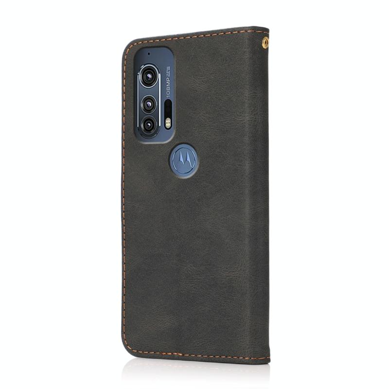 Θήκη τηλεφώνου από δέρμα με διπλή ραφή για Motorola Edge+ 2020 (Μαύρο καφέ)