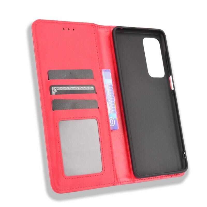 Για Motorola Edge 2021 μαγνητική πόρπη ρετρό μοτίβο οριζόντια Flip δερμάτινη θήκη με κάτοχο & υποδοχή για κάρτες & πορτοφόλι (Κόκκινο)