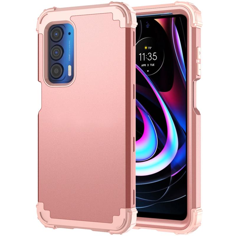 Για Motorola Edge 2021 Θήκη Υπολογιστή + Σιλικόνης (Ροζ χρυσός)