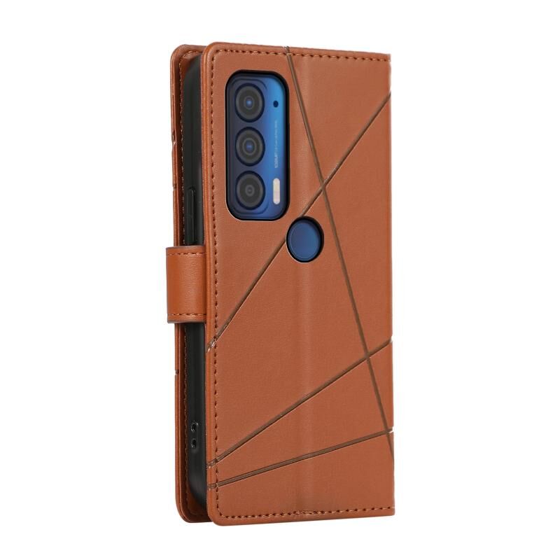 Θήκη τηλεφώνου Motorola Edge 2021 PU με ανάγλυφη υφή γνήσιου δέρματος (Μπλε)