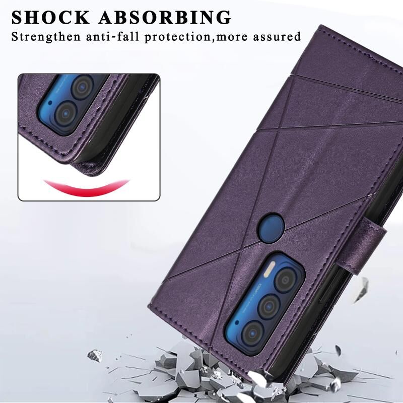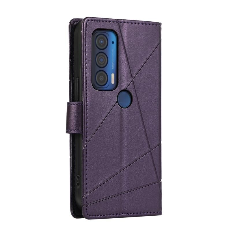 Θήκη τηλεφώνου Motorola Edge 2021 PU με ανάγλυφη υφή γνήσιου δέρματος (Μπλε)
