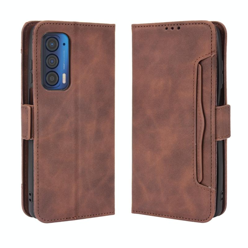 Θήκη δέρματος οριζόντιας αναδίπλωσης για Motorola Edge 2021 με υφή μοσχαριού, βάση στήριξης, θήκες για κάρτες & κορνίζα φωτογραφιών (Καφέ)