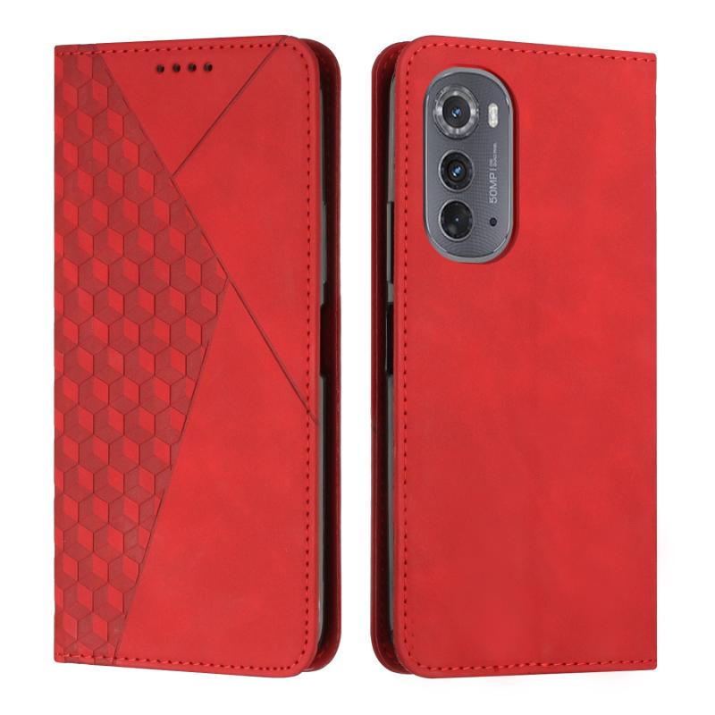 Θήκη κινητού τηλεφώνου με μαγνητική αίσθηση, υφή δέρματος και σχέδιο ραφής διαμαντιού για Motorola Edge 2022 (Κόκκινο)