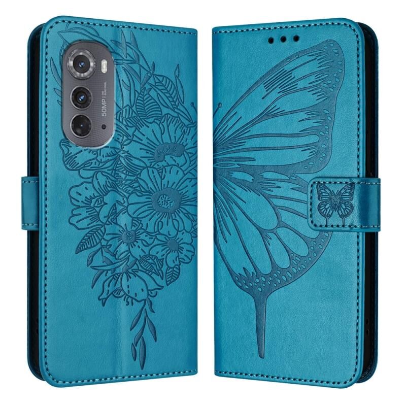 Για Motorola Edge 2022 / Edge + 5G UW 2022 ανάγλυφη πεταλούδα δερμάτινη θήκη τηλεφώνου (μπλε)