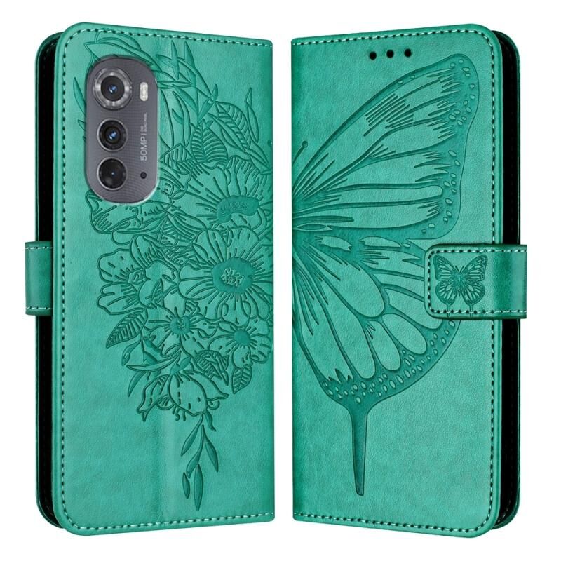Για Motorola Edge 2022 / Edge + 5G UW 2022 ανάγλυφη πεταλούδα δερμάτινη θήκη τηλεφώνου (πράσινο)