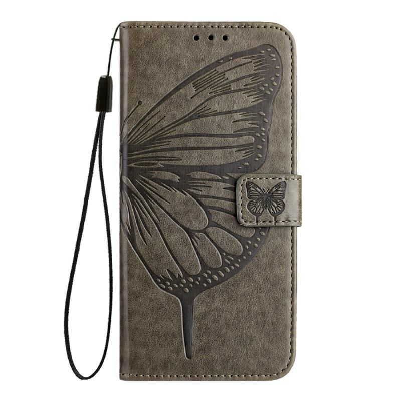 Για Motorola Edge 2022 / Edge+ 5G UW 2022 Ανάγλυφη θήκη τηλεφώνου από δέρμα πεταλούδας (γκρι)