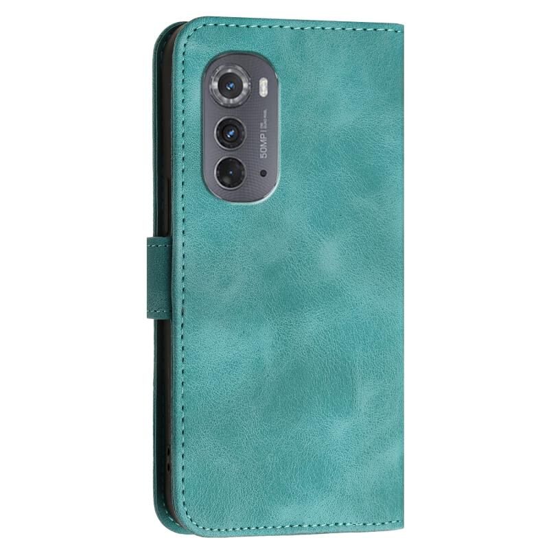 Θήκη κινητού τηλεφώνου δερμάτινη με ανάγλυφο σχέδιο Grid Butterfly για Motorola Edge 2022 με κορδόνι (Σκούρο Μπλε)