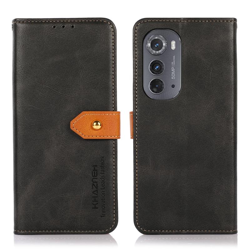 For Motorola Edge 2022 KHAZNEH Dual-color Cowhide Texture Flip Leather Phone Case(Black)