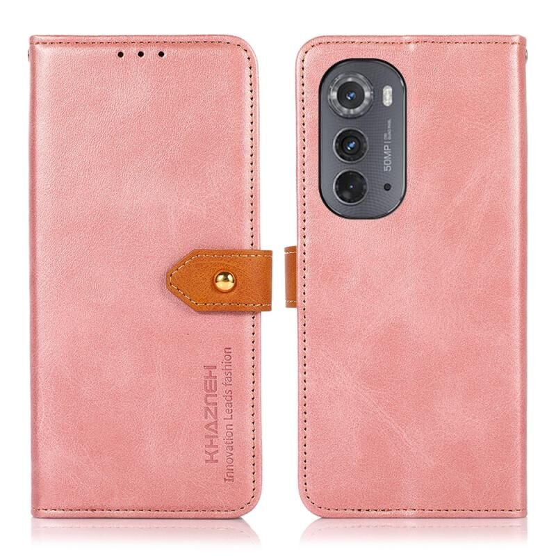 Θήκη τηλεφώνου δερμάτινη αναδιπλούμενη με υφή δερμάτινου μοσχαριού διχρωμίας για Motorola Edge 2022 KHAZNEH (Μαύρο)