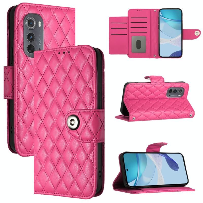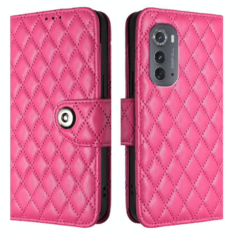 Για Motorola Edge 2022 Rhombic Texture Flip δερμάτινη θήκη τηλεφώνου με κορδόνι (Rose Red)