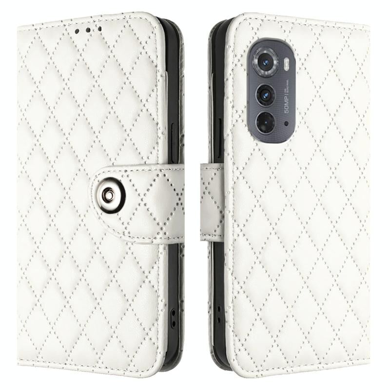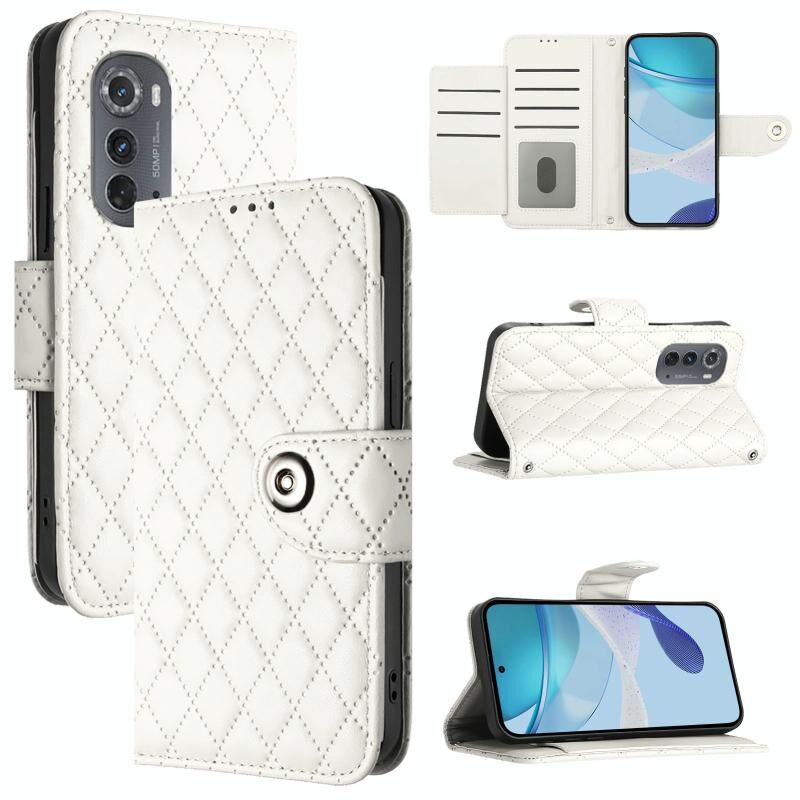 Για Motorola Edge 2022 Rhombic Texture Flip δερμάτινη θήκη τηλεφώνου με κορδόνι (λευκό)