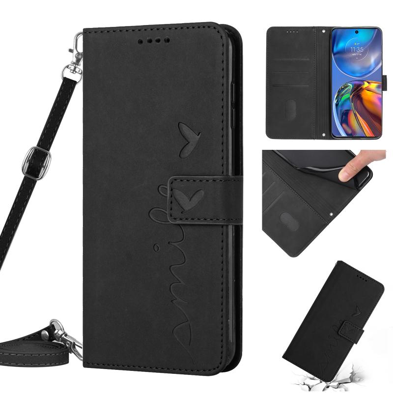 Θήκη κινητού τηλεφώνου από δέρμα με σχέδιο καρδιάς και λουρί για Motorola Edge 2022 (Καφέ)