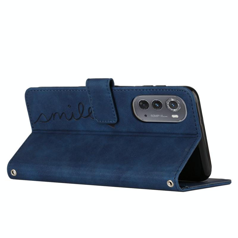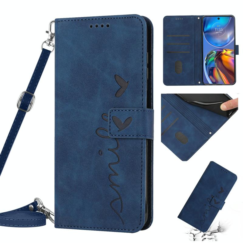 Θήκη κινητού τηλεφώνου από δέρμα με σχέδιο καρδιάς και λουρί για Motorola Edge 2022 (Καφέ)