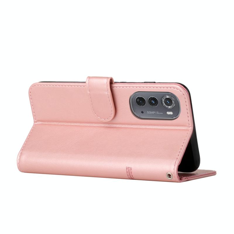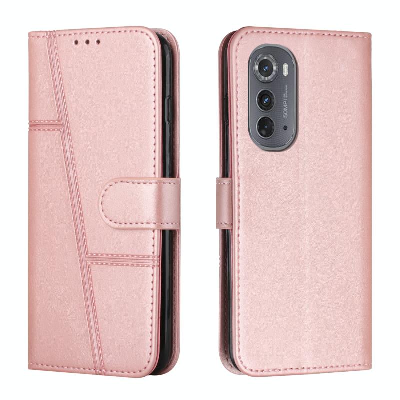 Θήκη κινητού τηλεφώνου από δέρμα με αγκράφα, υφή ραφής μοσχαριού για Motorola Edge 2022 (Ροζ)