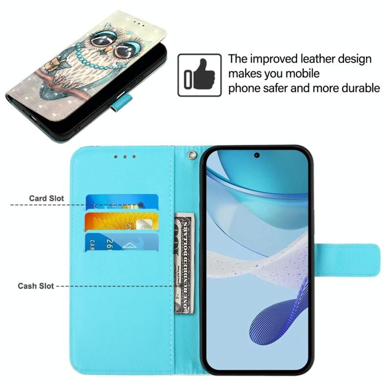 Θήκη τηλεφώνου από δέρμα με οριζόντια αναδίπλωση και τρισδιάστατη ζωγραφική για Motorola Edge+ 2023 / Moto X40 (Γκρι κουκουβάγια)
