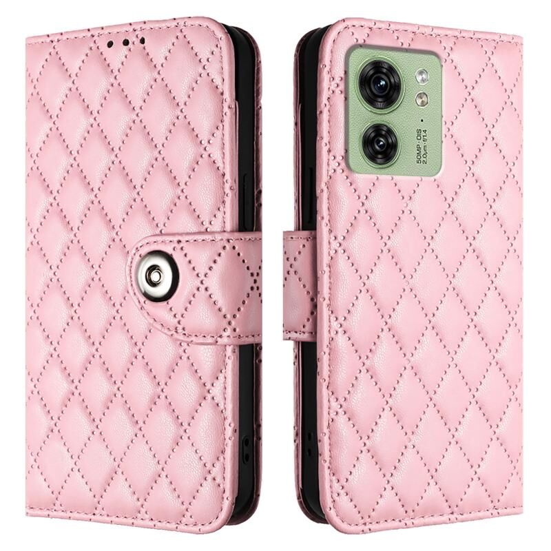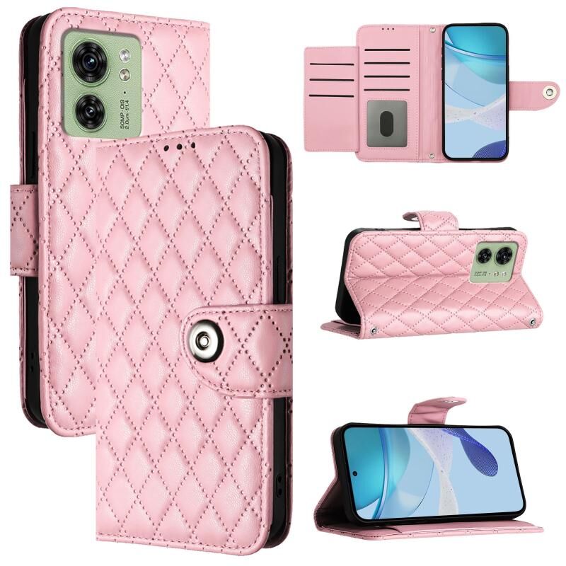 Για Motorola Edge 2023 Βόρεια Αμερική Ρομβική υφή Flip δερμάτινη θήκη τηλεφώνου με κορδόνι (ροζ)