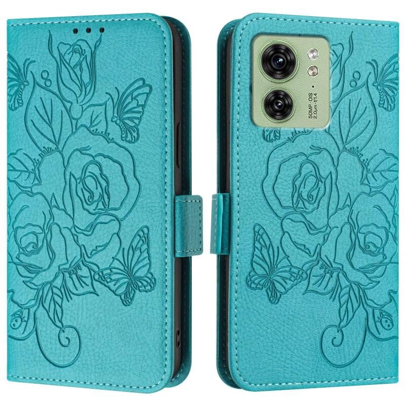 Για Motorola Edge 2023 Βόρεια Αμερική ανάγλυφο Rose RFID Anti-theft δερμάτινη θήκη τηλεφώνου (γαλάζιο)
