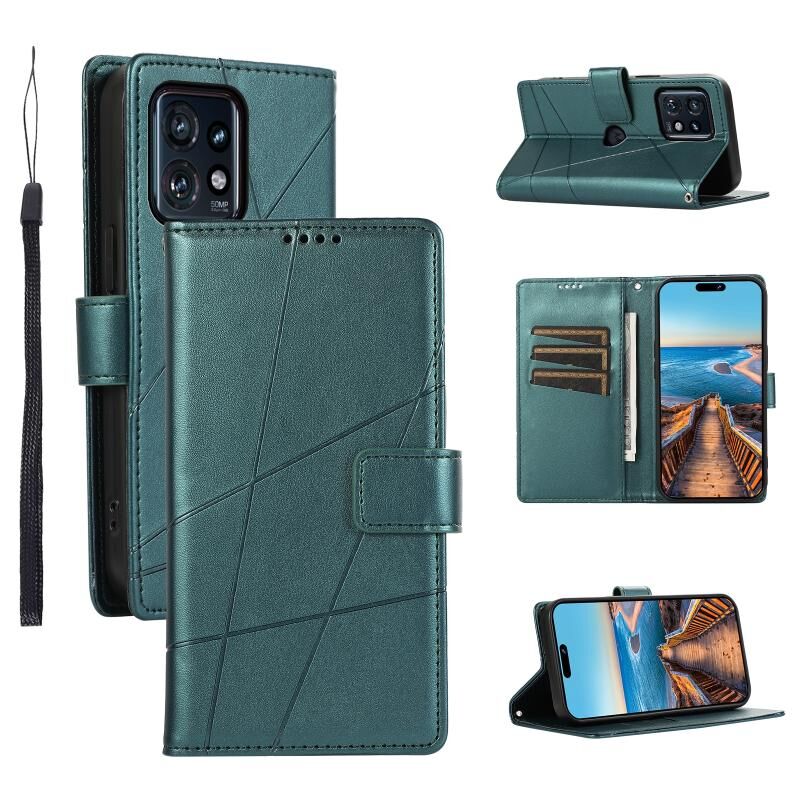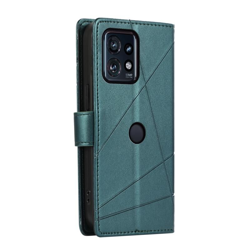 Θήκη τηλεφώνου Motorola Edge+ 2023 από γνήσιο δέρμα με ανάγλυφη υφή και μπλε χρώμα.