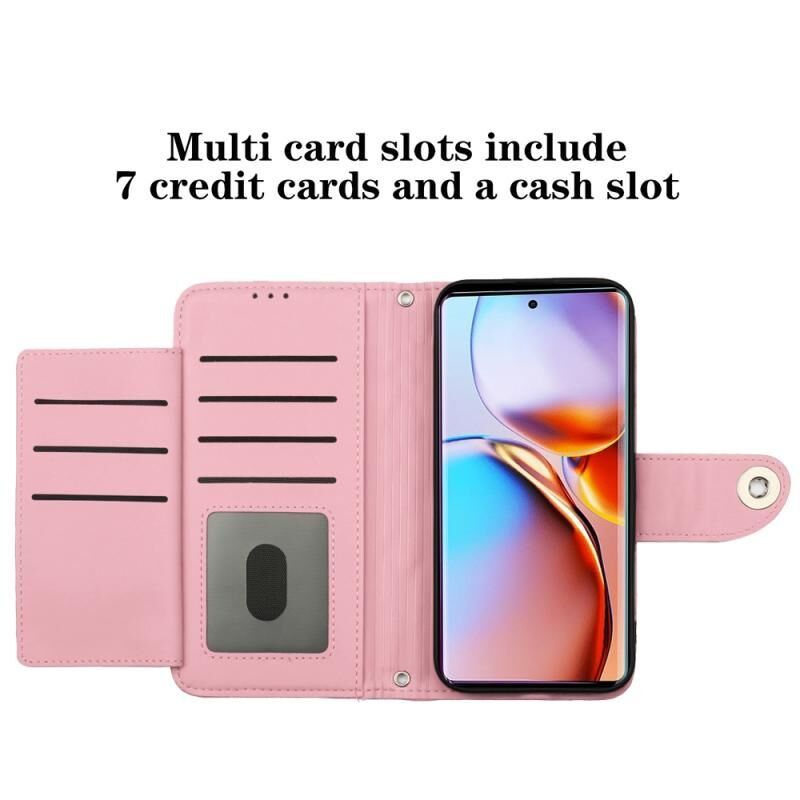 Για Motorola Edge + 2023 Rhombic Texture Flip δερμάτινη θήκη τηλεφώνου με κορδόνι (ροζ)