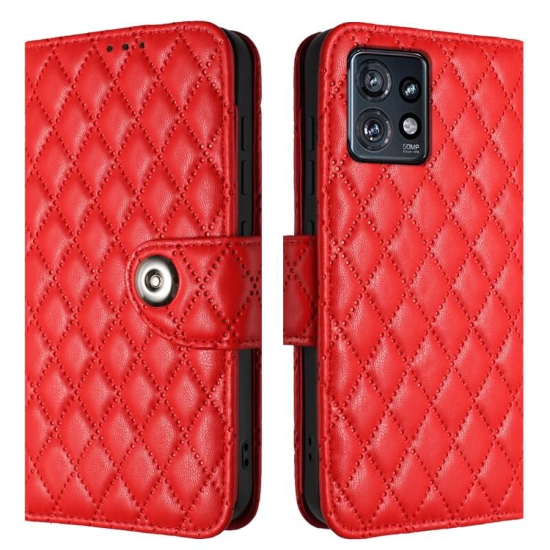 Για Motorola Edge + 2023 Rhombic Texture Flip δερμάτινη θήκη τηλεφώνου με κορδόνι (κόκκινο)