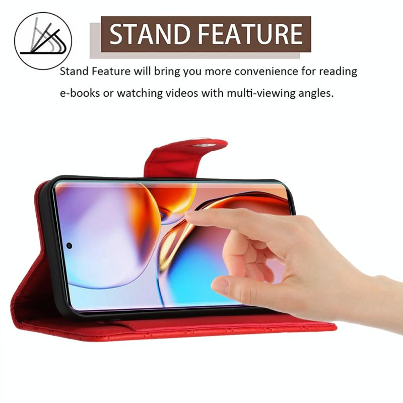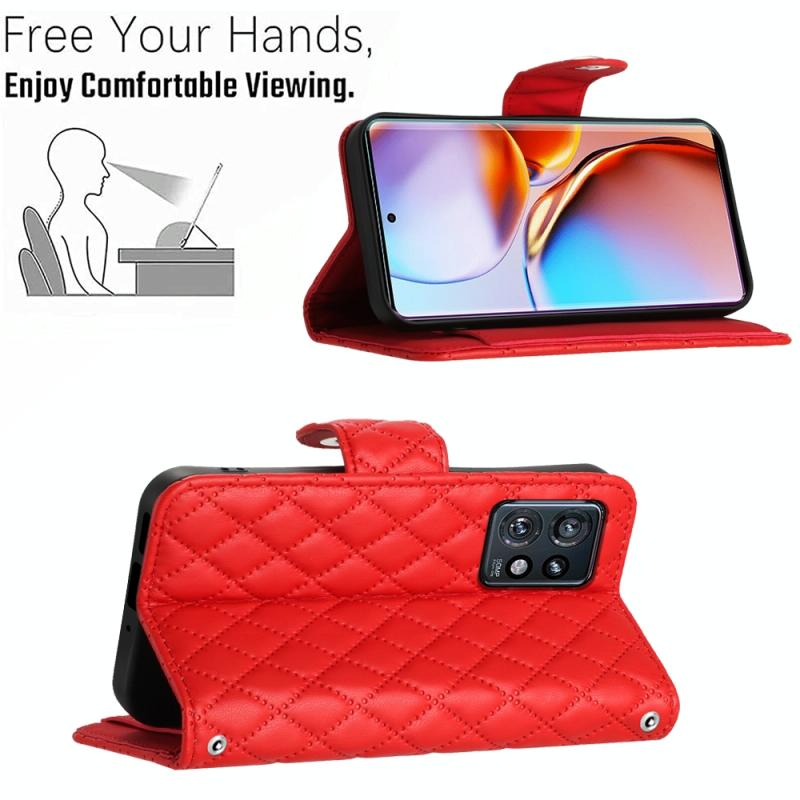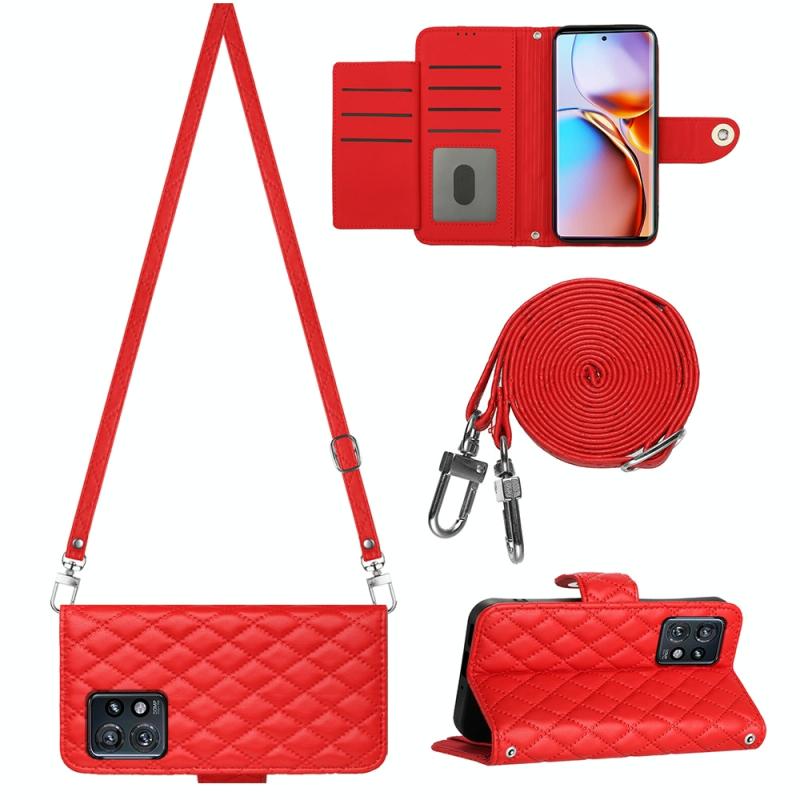 For Motorola Edge+ 2023 Rhombic Texture Flip Leather Phone Case with Long Lanyard(Red)