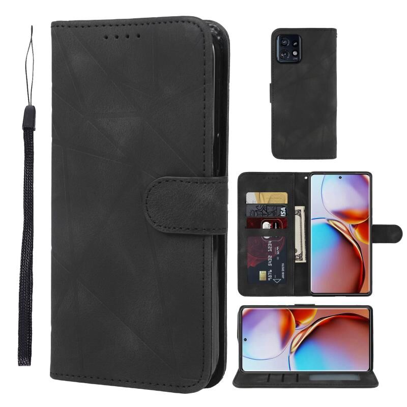 Για Motorola Edge + 2023 Skin Feel γεωμετρικές γραμμές δερμάτινη θήκη τηλεφώνου (μαύρο)