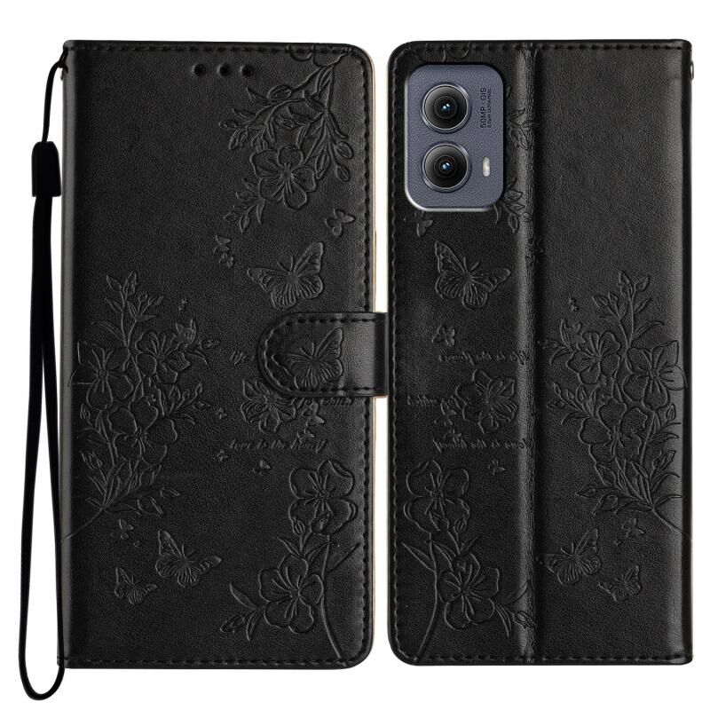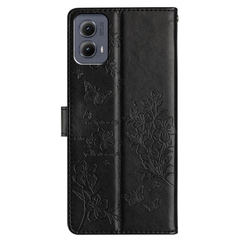 Θήκη τηλεφώνου από δέρμα για Motorola Edge 2024, Πεταλούδες και Λουλούδια (Χρυσό)
