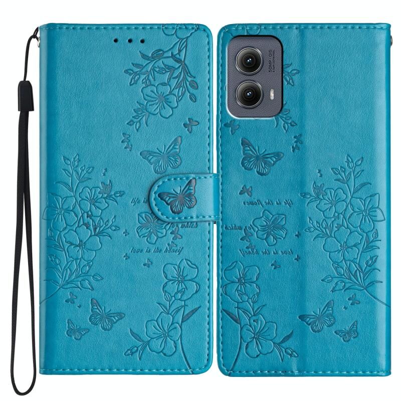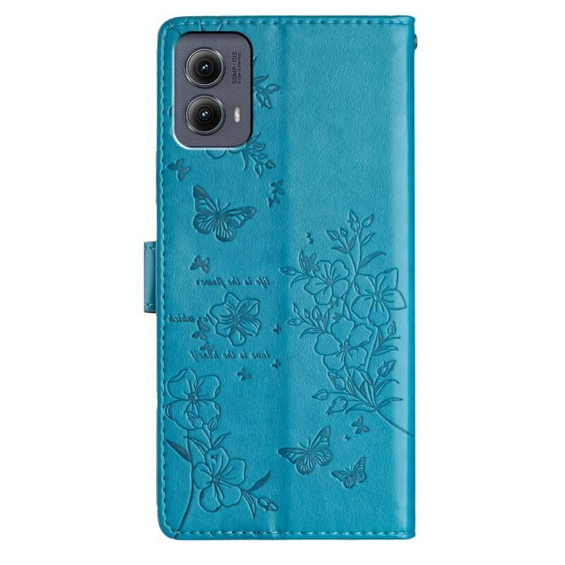 Θήκη τηλεφώνου από δέρμα για Motorola Edge 2024, Πεταλούδες και Λουλούδια (Χρυσό)