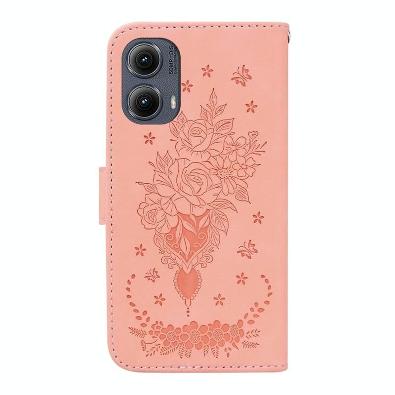 Για Motorola Edge 2024 Πεταλούδα Rose ανάγλυφη δερμάτινη θήκη τηλεφώνου (ροζ)