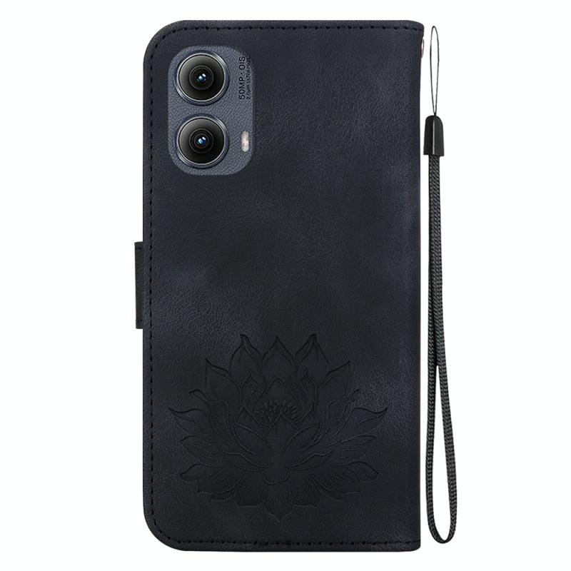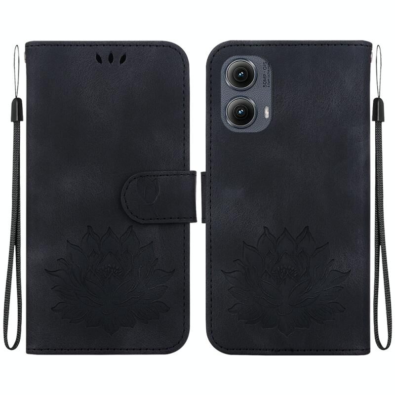 For Motorola Edge 2024 Lotus Embossed Leather Phone Case(Black)