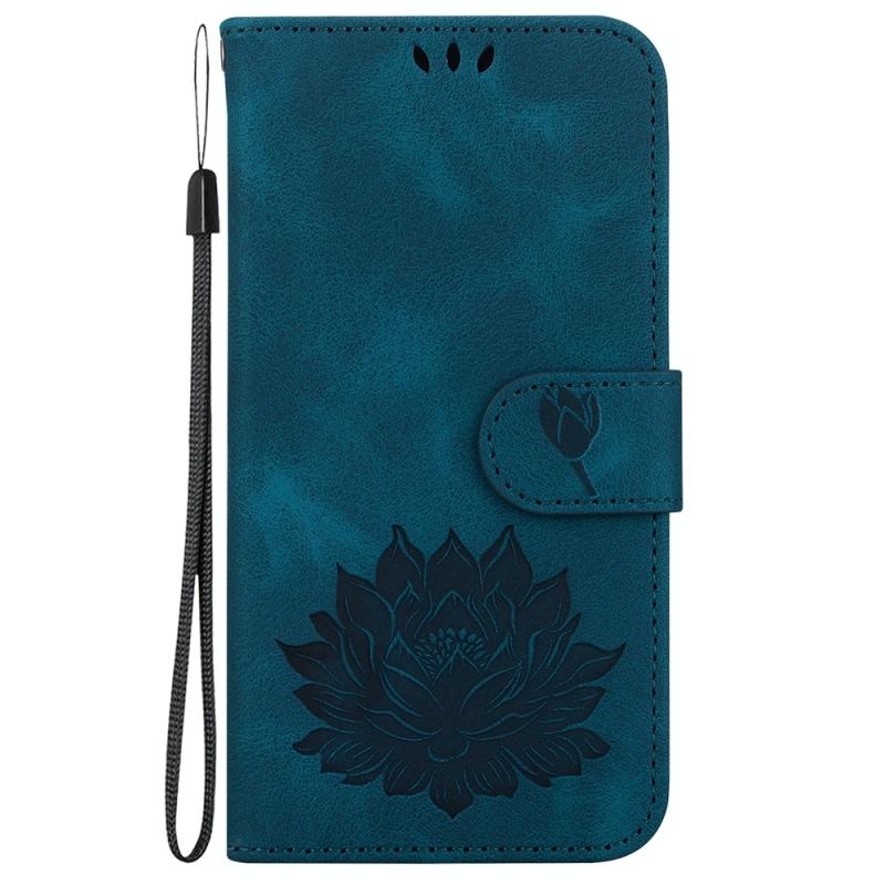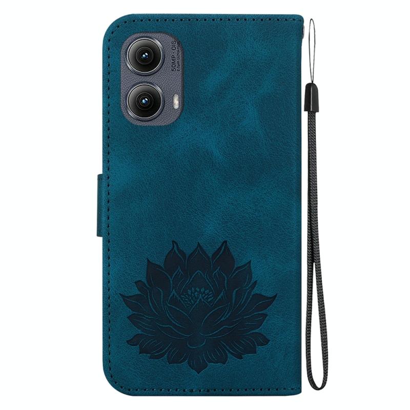 For Motorola Edge 2024 Lotus Embossed Leather Phone Case(Dark Blue)
