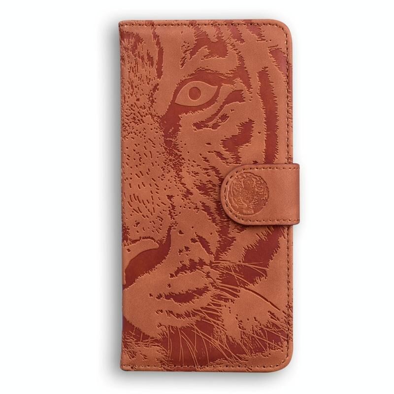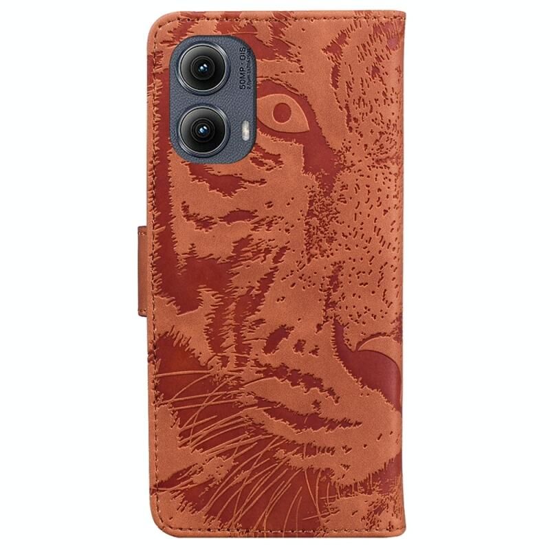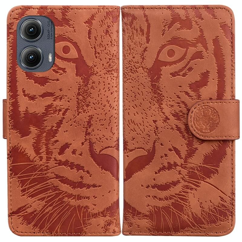 Θήκη τηλεφώνου δερμάτινη με ανάγλυφο μοτίβο τίγρης για Motorola Edge 2024 (Καφέ)