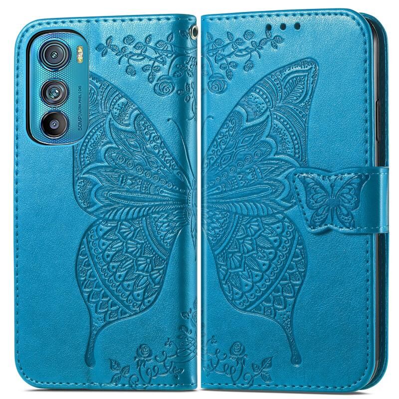 Για Motorola Edge 30 πεταλούδα αγάπη λουλούδι ανάγλυφο λουλούδι Flip δερμάτινη θήκη τηλεφώνου (μπλε)