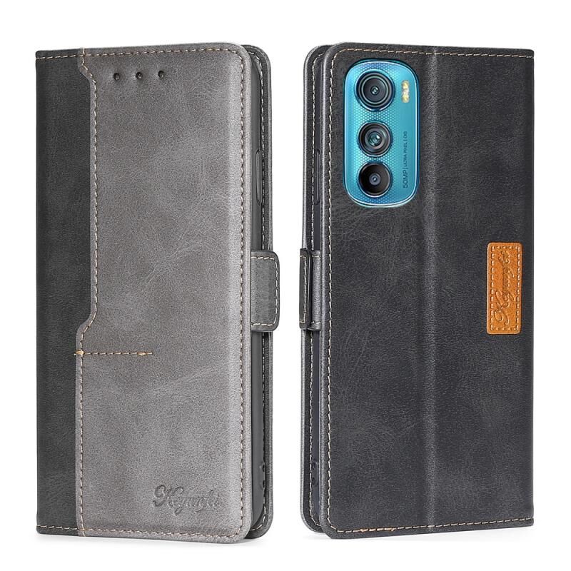 Για Motorola Edge 30 αντίθεση χρώμα πλευρά πόρπη δερμάτινη θήκη τηλεφώνου υπόθεση (μαύρο + γκρι)