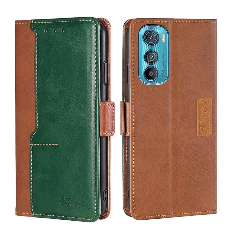 Για Motorola Edge 30 αντίθεση χρώμα πλευρά πόρπη δερμάτινη θήκη τηλεφώνου υπόθεση (ανοιχτό καφέ + πράσινο)