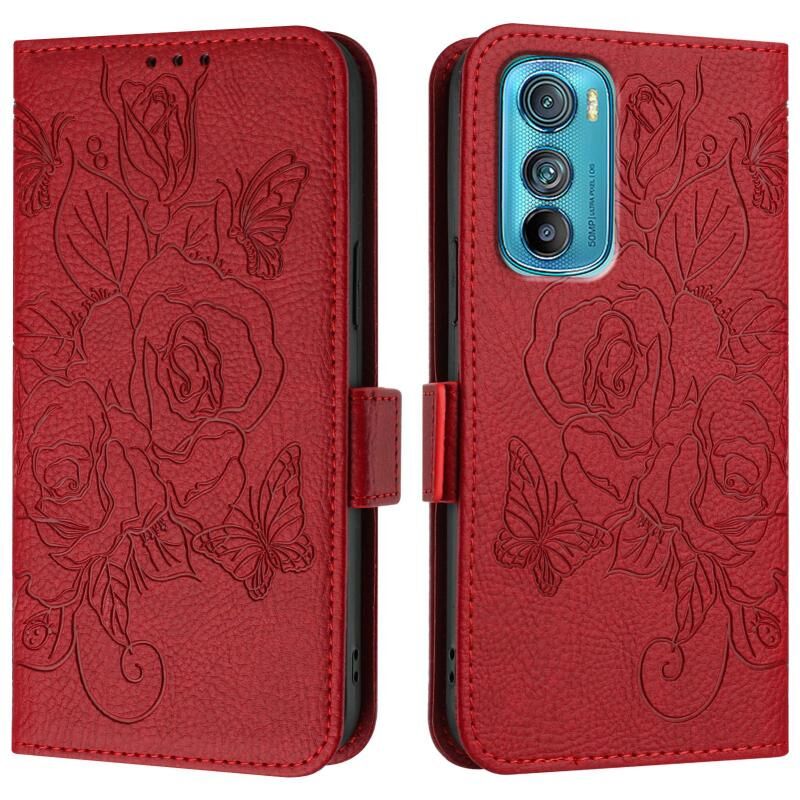 Για Motorola Edge 30 ανάγλυφο Rose RFID Anti-theft δερμάτινη θήκη τηλεφώνου (Κόκκινο)