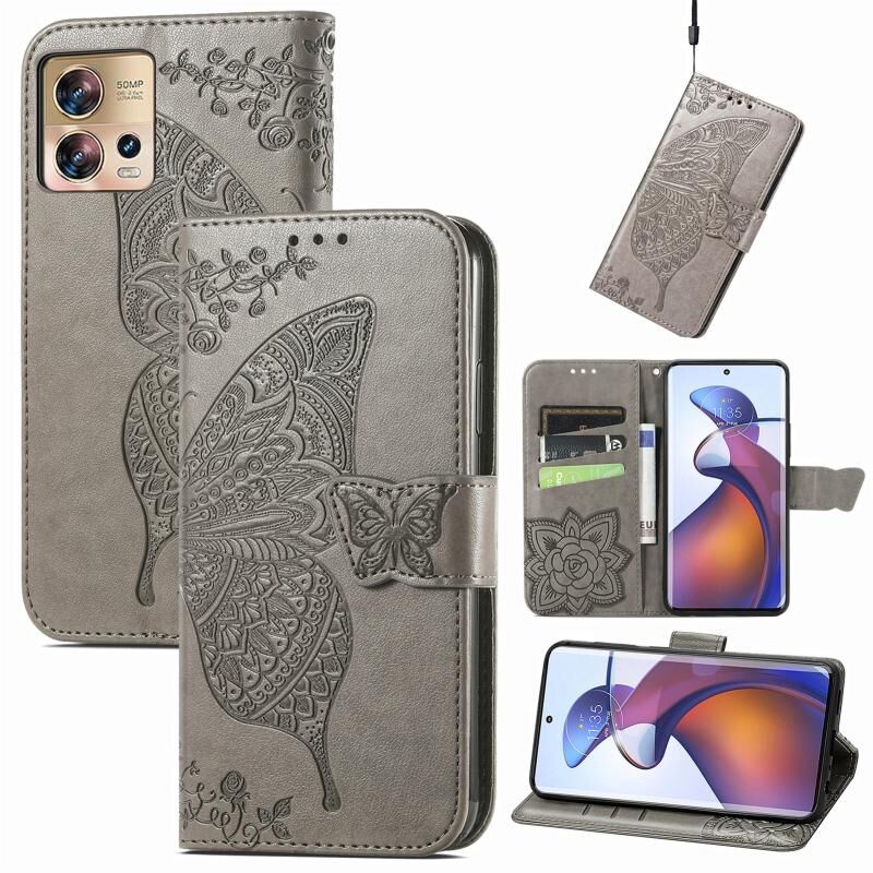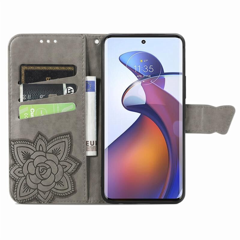 Θήκη τηλεφώνου από δέρμα με ανάγλυφο σχέδιο πεταλούδας και λουλουδιών για Motorola Edge 30 Fusion (Μαύρο)