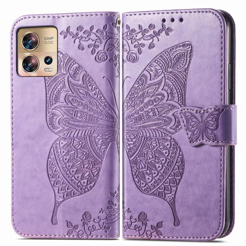 For Motorola Edge 30 Fusion Butterfly Love Flower Embossed Flip Leather Phone Case(Light Purple)