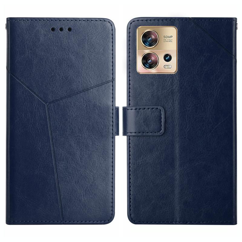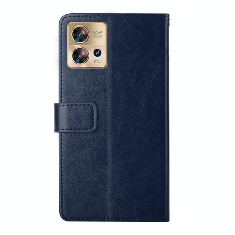 Θήκη τηλεφώνου από δέρμα με σχέδιο Y και πτυσσόμενη για Motorola Edge 30 Fusion/Moto S30 Pro HT01 (Μπλε)