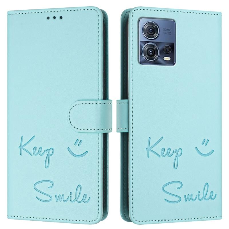 Θήκη τηλεφώνου δερμάτινη με ανάγλυφο χαμόγελο και RFID για Motorola Edge 30 Fusion (Μέντας Πράσινο)