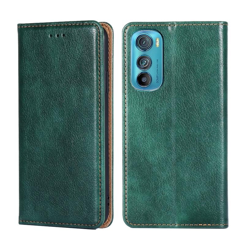 Για Motorola Edge 30 γυαλιστερό λάδι στερεό χρώμα μαγνητικό δέρμα τηλέφωνο υπόθεση (πράσινο)