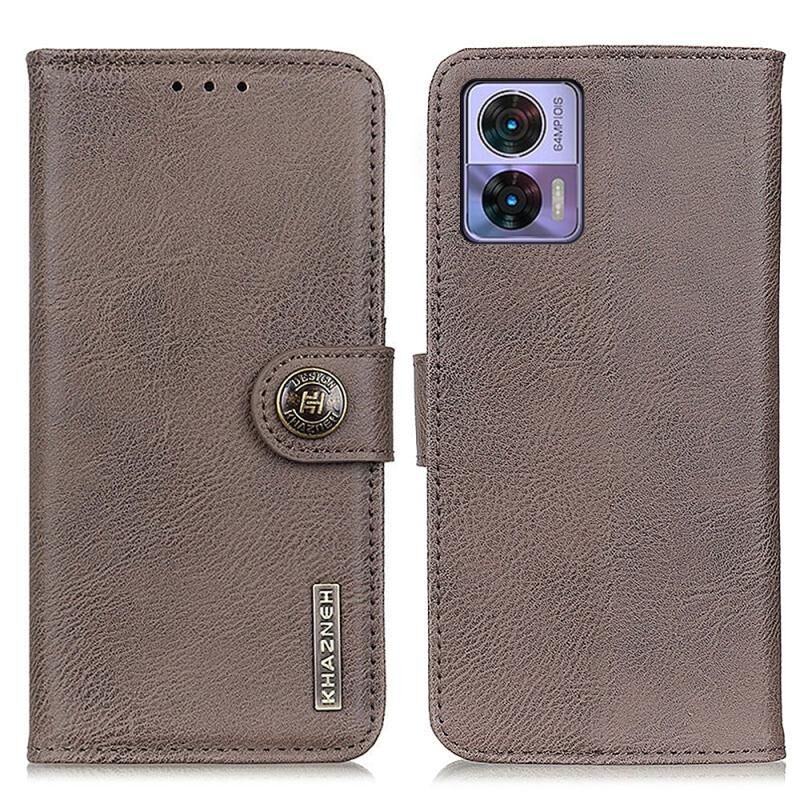 Θήκη κινητού τηλεφώνου από δέρμα με υφή δέρματος αγελάδας KHAZNEH για Motorola Edge 30 Lite / Edge 30 Neo (Καφέ)
