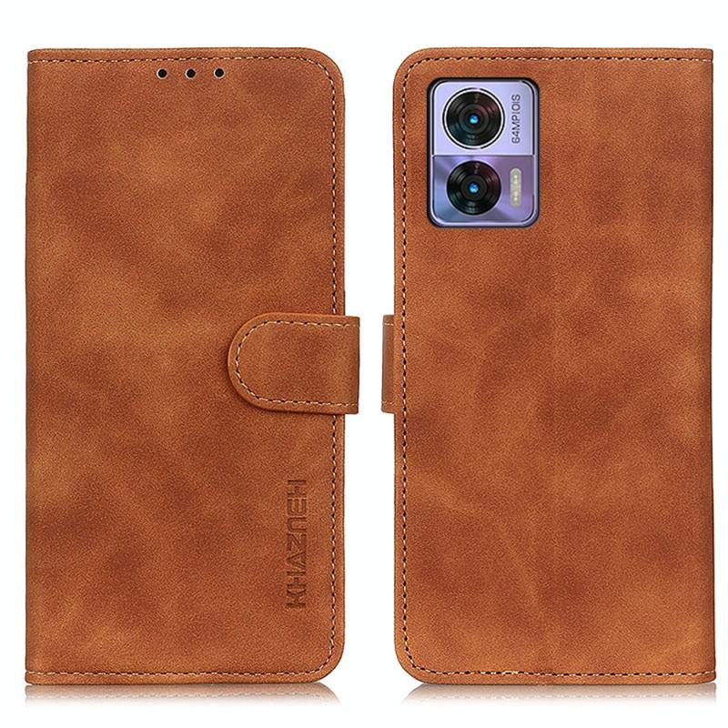 Θήκη κινητού τηλεφώνου από δέρμα με ανάγλυφη υφή Retro KHAZNEH για Motorola Edge 30 Lite / Edge 30 Neo (Μαύρο)