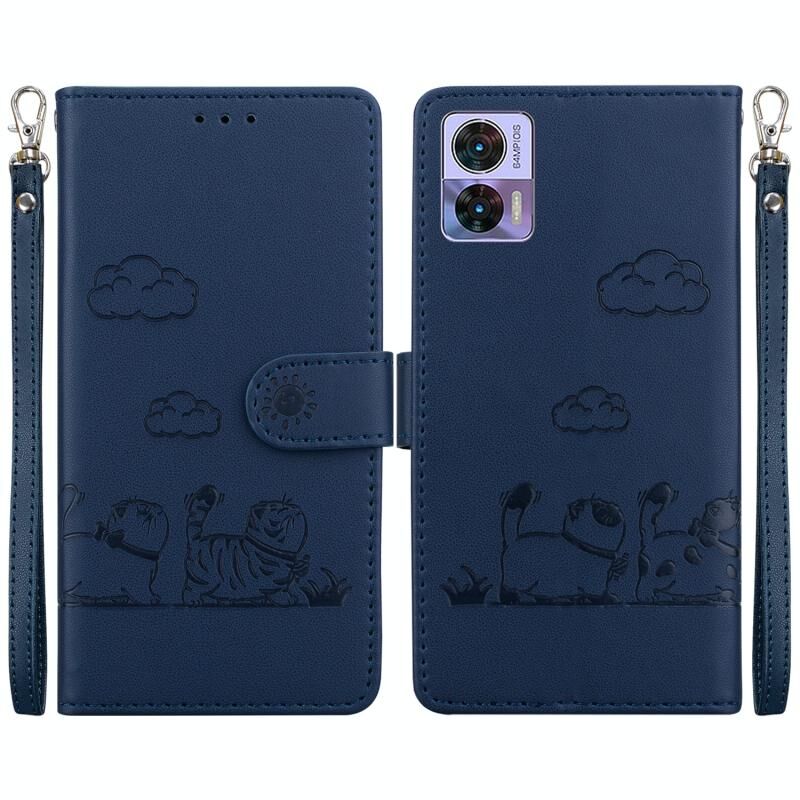 Θήκη τηλεφώνου από δέρμα με χαριτωμένες γάτες και τεχνολογία RFID για Motorola Edge 30 Neo / 30 Lite (Χρυσό Ροζ)
