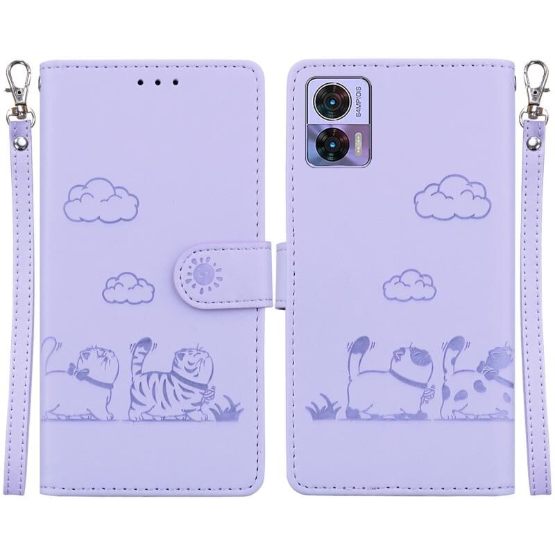Θήκη τηλεφώνου από δέρμα με χαριτωμένες γάτες και τεχνολογία RFID για Motorola Edge 30 Neo / 30 Lite (Χρυσό Ροζ)