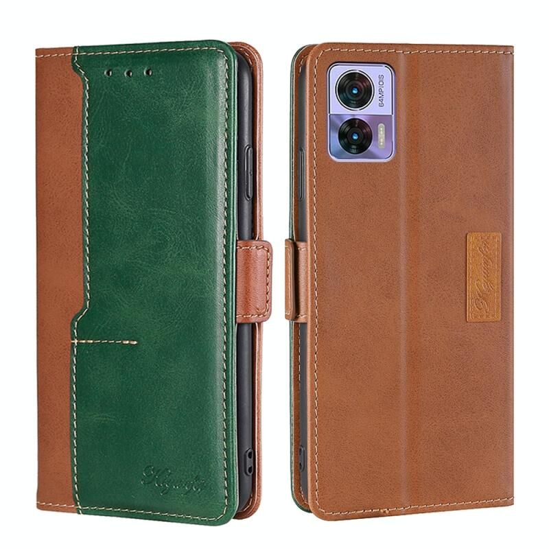 Για Motorola Edge 30 Neo Αντίθετο χρώμα πλευρά πόρπη δερμάτινη θήκη τηλεφώνου (Ανοιχτό καφέ και πράσινο)