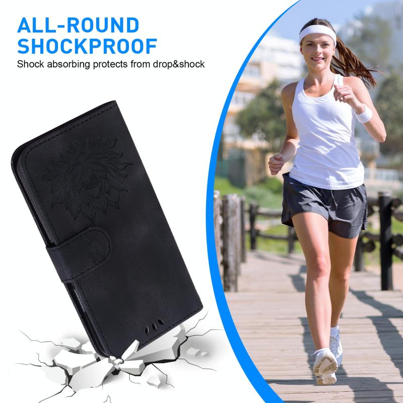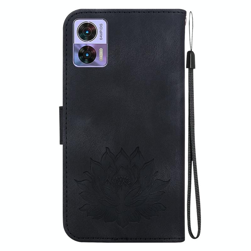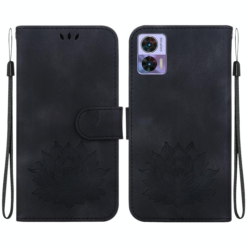 For Motorola Edge 30 Neo / Edge 30 Lite Lotus Embossed Leather Phone Case(Black)