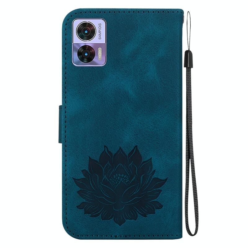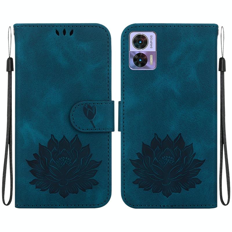 For Motorola Edge 30 Neo / Edge 30 Lite Lotus Embossed Leather Phone Case(Dark Blue)