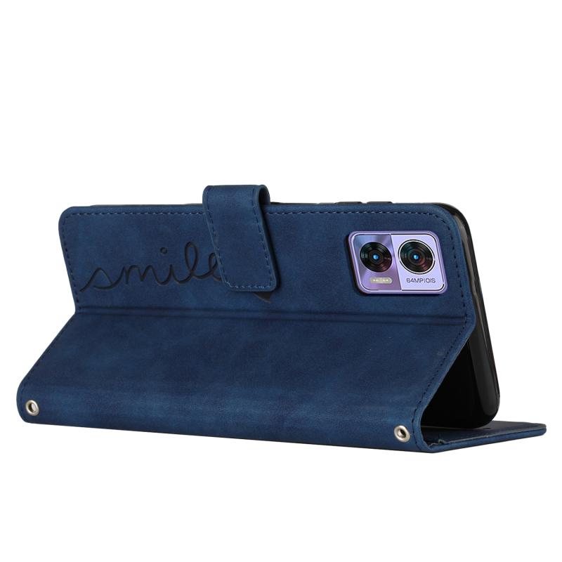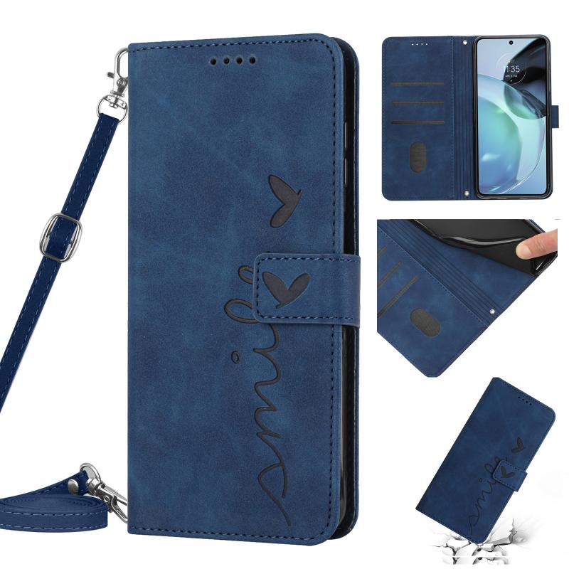 Θήκη κινητού τηλεφώνου από δέρμα με σχέδιο καρδιάς και αίσθηση δέρματος για Motorola Edge 30 Neo / Edge 30 Lite με κορδόνι (Μπλε)