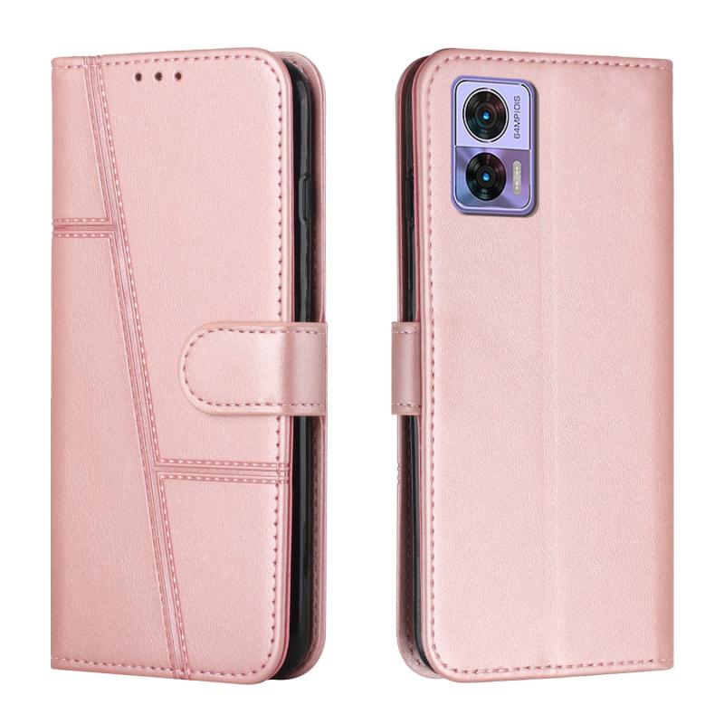 Θήκη τηλεφώνου από δέρμα με υφή μοσχαριού και αγκράφα για Motorola Edge 30 Neo / Edge 30 Lite (Χρυσό Ροζ)